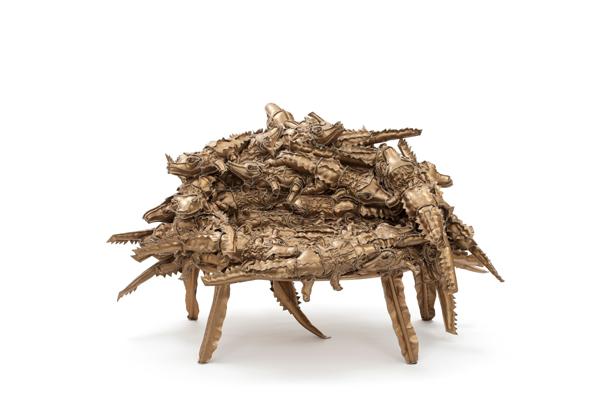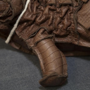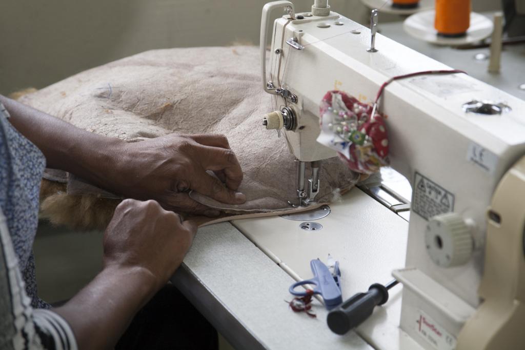 Outro ícone dessa parceria são os icônicos ursos e crocodilos em couro reaproveitado, cuidadosamente confeccionados por nossas artesãs. Essas peças, que transbordam afeto e autenticidade, fazem parte da renomada coleção de móveis Banquete, dos Campana — uma coleção que rodou o mundo e mostrou que design e inclusão podem, sim, caminhar juntos.