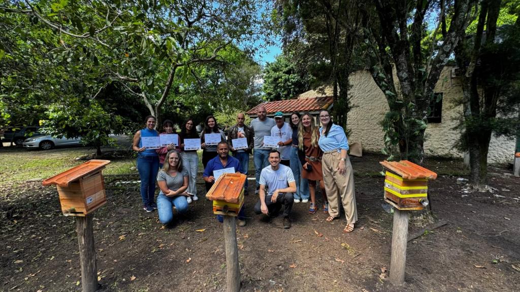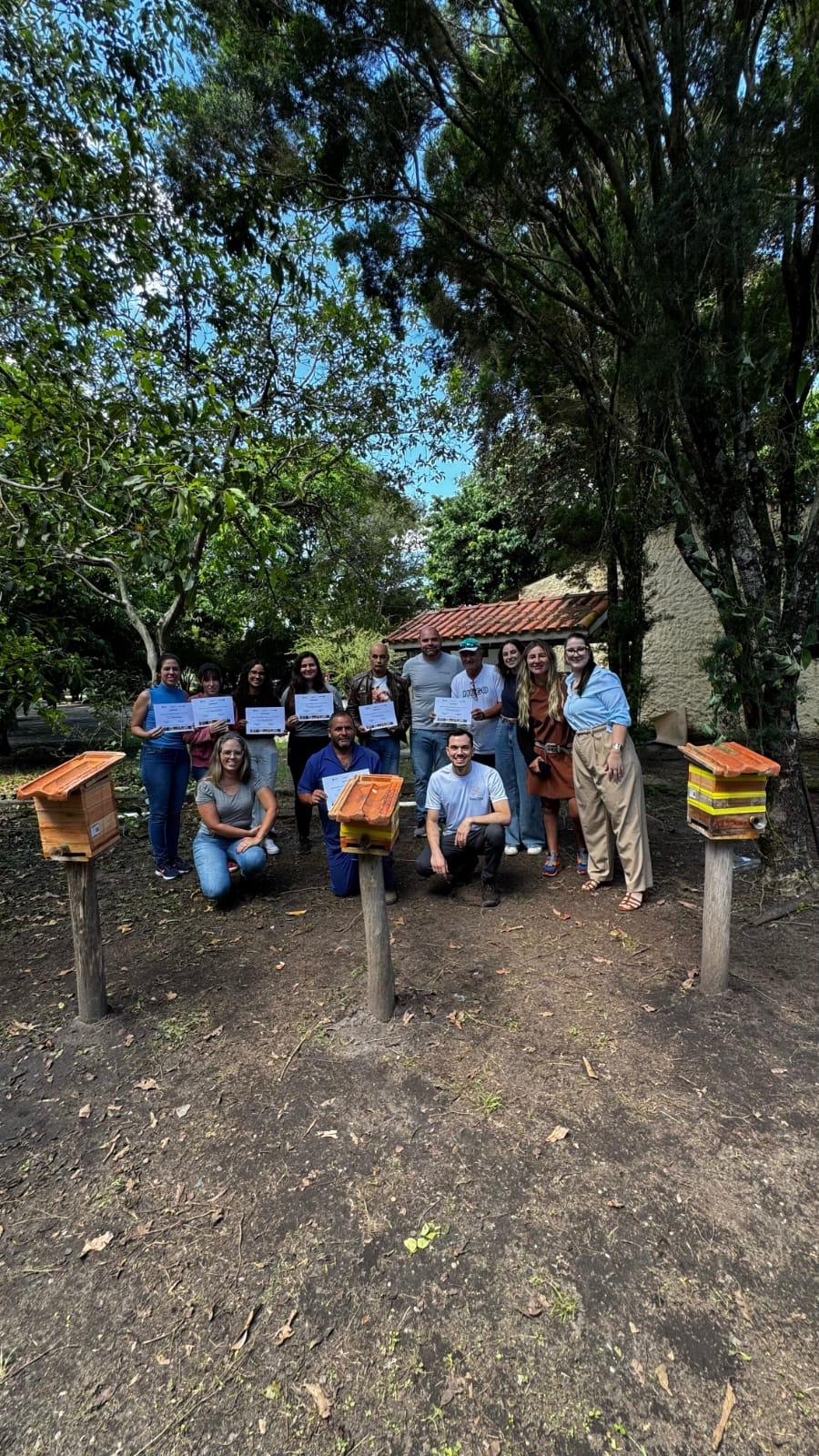 Entre os meses de março e abril, realizamos nosso primeiro curso de manejo de abelhas nativas sem ferrão, guiado pelo especialista Felipe Meireles (@sommelierdemel_felipemeireles) em parceria com a Bee2Be (www.bee2be.eco.br) e o apoio da EDP. Foram 10 pessoas formadas, entre membros da comunidade e da nossa própria equipe, prontas para se tornarem guardiãs desse patrimônio natural. Além disso, o Projeto BeeVolt, capacitou sete pessoas — incluindo quatro mulheres — na criação de abelhas sem ferrão, promovendo geração de renda, conservação ambiental e transformação social.