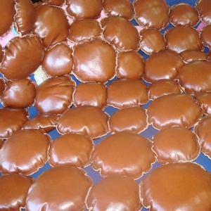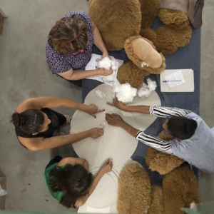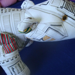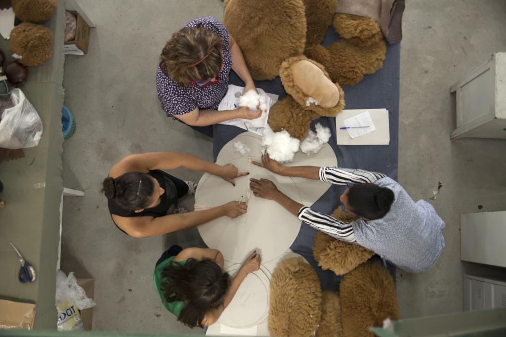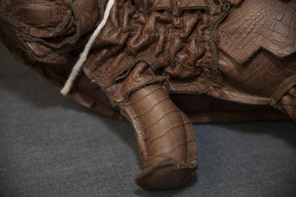 Outro ícone dessa parceria são os icônicos ursos e crocodilos em couro reaproveitado, cuidadosamente confeccionados por nossas artesãs. Essas peças, que transbordam afeto e autenticidade, fazem parte da renomada coleção de móveis Banquete, dos Campana — uma coleção que rodou o mundo e mostrou que design e inclusão podem, sim, caminhar juntos.