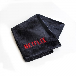 • Uma manta preta com a frase bordada em vermelho: “Tem alguém assistindo ainda?”