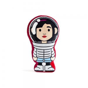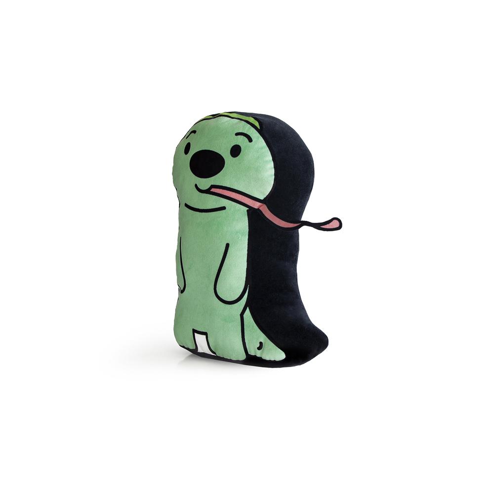 • Uma almofada vermelha com bordado preto escrito NETFLIX;