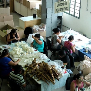 Começamos a oferecer aulas. Mas a mão de obra especializada que formávamos não bastava, pois não se encontravam compradores para a produção de lindos bordados e costuras. Era preciso ir além da capacitação; e ampliamos nosso projeto. Passaríamos a vender os produtos que as artesãs produziriam. Nosso primeiro cliente foi a Daslu, que nos encomendava produtos de moda, bebê e decoração.